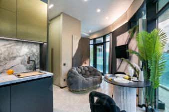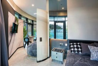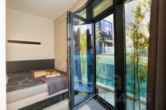 Скай Плаза 3.0 (Дражинского 45А) Новый Апартамент 32,4м2 (из них: 7,5м2 терраса) с дорогим дизайнерским ремонтом с терраса с видом на пальмы и частично море. 4 этаж. 3 спальных места (двухспальная кровать и откидная кровать односпальная со шкафа). в прихожей: шкаф со стиральной машиной - холодильником , пантограф чтобы повесить одежду , место для чемодана, обуви и тд, гладильная доска, утюг) в санузле: теплая стена для полотенец, тёплый пол, зеркало с подсветкой, душ, туалет. в кухне и гостиной зоне: откидная кровать со шкафа, кофемашина капсульная, микроволновка с духовкой, вся посуда, чайник , места для хранения, мини диван и телевизор, стол и стулья. в спальной зоне: кровать двуспальная - шкаф, в кровати ящики выдвижные, умная тумба с беспроводной зарядкой и она же музыкальная колонка по Bluetooth ) терраса: барная стойка, 2 стула, сушилка. Пешком до: 3 минут - свой пляж Sky Beach (отдельная плата за шезлонги и бассейн - уточняется на месте на пляже!) 3 минут - своя набережная. 3 минут - ночной клуб ЧАЙКА НА ПЛЯЖЕ. 2 минуты - Массандровский парк (самый большой на ЮБК). 3 минута - в доме продуктовый магазин. 18 минут - супермаркет ПУД. (либо на электрокаре за 5 мин) 18 минут - основная набережная Ялты. (либо на электрокаре за 5 мин) 2 минуты - отель Ялта интурист в нем можно за доп плату. воспользоваться: ресторан, СПА, тренажерный зал и бассейн. 1 минута - детская площадка. Правила заселения и выселения:- Пожалуйста, предупреждайте о своем приезде заранее, желательно за день до заезда. - Заезд с 14:00 (если приезд раньше - можно оставить вещи, пока идет уборка). - Выезд до 12:00 (возможно продление за дополнительную плату, только если квартира не забронирована следующими гостями). Размещение на 4 этаже в ЖК "Sky Plaza 3.0". Постельное белье и полотенца, тапочки, гель для душа, шампунь и тд. Бытовая техника: стиральная машина, микроволновка+духовка, электро плита, электрочайник, кофеварка xiaomi, бокалы, кружки, чай - кофе, полная комплектация) и столовые приборы. В стоимость проживания НЕ входит: паркинг - 1000 руб / сутки. Полукруглая квартира - окна в пол по всей квартире! Панорама! вид на пальмы - и частично на море! Очень светлая квартира! Теплый пол по всей квартире + радиаторы. В санузле: теплая стена, керамогранит, душевая, раковина со шкафчиком, столик, туалет, зеркало с подсветкой. По всей квартире керамогранит на полу. В зоне дивана и телевизора - стены с жидким мрамором! На террасе барная стойка и тоже плитка в нескольких цветах. Два выхода на террасу из спальни и из кухни студии. Большое количество зелени (бамбук) На кухне весь гарнитур (стол, стулья, встроенная кофемашина, плита, микроволновка и тд. и рядом откидывается кровать односпальная со шкафа (при желании можно переоборудовать и поставить полки для хранения одежды вместо откидной кровати) Диван дизайнерский в середине квартиры и телевизор напротив. Кровать двуспальная (с ящиками для хранения белья) с умной прикров