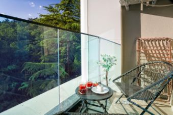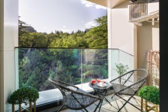 Ваша личная терраса с умиротворяющим видом на зелёный парк.