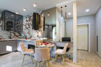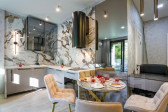 Полностью оборудованная кухня и вся бытовая техника (посудомойка, стиральная машина, кофеварка).