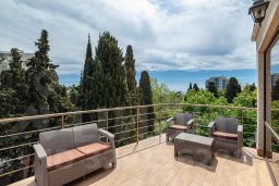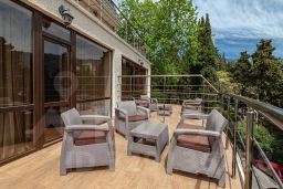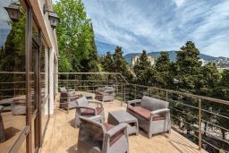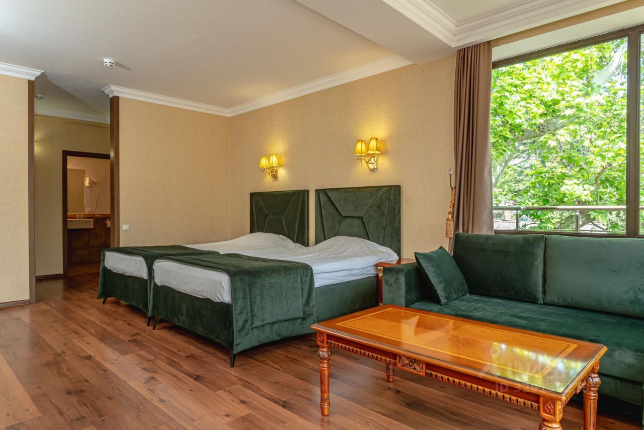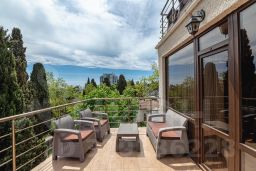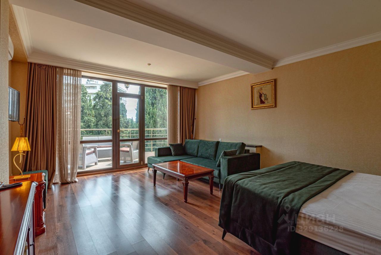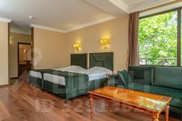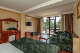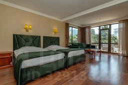 Просторный номер в частном отеле Ялты общей площадью 40 квадратных метров, с одной двуспальной или двумя полуторными (Twin) кроватями, также в гостиной зоне находится раскладной полуторный диван для проживания дополнительного человека. Есть выход на террасу площадью 15 квадратных метров, с мебелью из ротанга для комфортного отдыха. В номере имеется: мини-бар, сейф, письменный стол, кондиционер, Wi-Fi, фен, телефон, LED-телевизор с цифровым телевидением, а также фирменные халаты, одноразовые тапочки, набор полотенец на каждого гостя, минипарфюмерия.