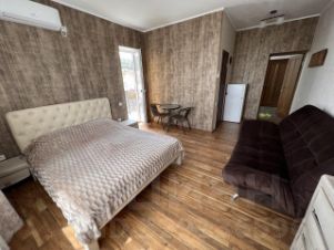 Гостевой дом "Витязь" расположен в с. Морское, городской округ Судак, ул. Ленина 16 находимся в 200 м от моря. Все номера современные с качественной мебелью, во многих также есть балконы. В номере гости могут пить кофе, любуясь красивыми видами моря и гор. К услугам гостей бесплатная частная парковка и живописная территория с газоном, качелями, лавочками. Ухоженный зеленый сад с южными растениями. Есть летняя кухня с зоной барбекю(мангал, шампура и т. д. ). В гостевом доме есть столовая, где гости могут заказать завтрак, обед и ужин. Дизайнерский номер с балконом для проживания 3-4-x человек. В номере есть собственная ванная комната, кондиционер, холодильник, телевизор, шкаф с комодом, Wi-Fi. Также на территории гостевого дома "Витязь" есть просторная парковка, зона барбекю, озеленённый сад с экзотическими растениями, качели, обеденная зона с летней кухней со всем необходимым для приготовления пищи.