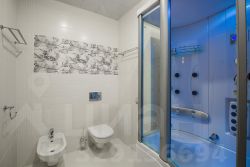 Просторный двухкомнатный номер с балконом, состоящий из спальни и гостиной, окна которых открывают вид на море. Спальня имеет большую кровать (1,8 м х 2 м) с ортопедическими подушками, туалетный столик, кресло. Гостиная обустроена мини-прихожей, раскладным диваном для дополнительного спального места, мягким креслом, письменным столом и шкафом-купе. Ванная комната оборудована душевой кабиной с функцией "тропический душ".