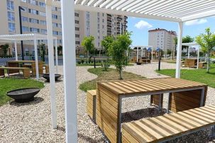 • - детская и спортивная площадка, теннисные столы, скамейки,