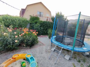 • Настоящий рай для детей: большой закрытый батут, игровая площадка (горка, качели, песочница), детская кроватка и стульчик.