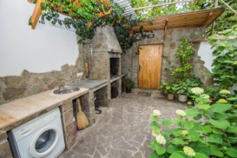 В тихом районе Гурзуфа, по улице Подвойского расположился отдельный трехкомнатный дом, для комфортного проживания 5-6 человек. Во дворе находится беседка, мангал, дополнительный санузел, парковочное место и маленький пруд. В доме три комнаты, из которых одна проходная. В одной из комнат находиться двуспальная кровать и ТВ. В другой комнате есть две односпальных кровати и телевидение. В проходной комнате расположен диван, два раскладных кресла, плазма и интернет. На кухне находится большой обеденный стол, электроплита, духовой шкаф, холодильник, ТВ, микроволновая печь, электрочайник и набор необходимой посуды. В номере есть раздельный санузел. В ванной комнате имеется стиральная машинка, ванная, горячая и холодная вода круглосуточно. В 10-ти метрах находится продуктовый магазин, а рядом есть автобусная остановка и рынок. К морю идти до 10 минут.