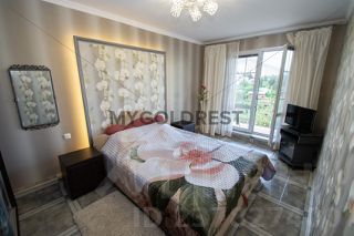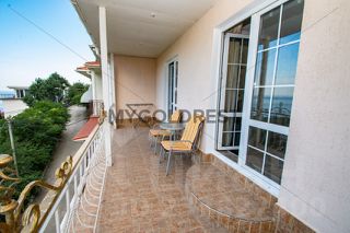 Вашему вниманию предлагается удобный 2-х комнатный номер расположен на 3 этаже и рассчитан на 4-6 человек. Он имеет отдельный вход, свой двор с качелей. Имеется балкон с шикарной панорамой на море и город. В комнатах находятся двуспальные кровати, шкафы для одежды, телевизоры с кабельным ТВ, интернет Wi-Fi. Санузел оборудован ванной и стиральной машиной, есть полноценная кухня с необходимой посудой. Горячая и холодная вода круглосуточно. Также предоставляется мангал и гараж для парковки автомобиля. До моря идти 10-12 минут.