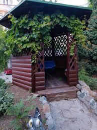 Ухоженный двор, мангал,беседка, столик на балконе дома. До пляжа 700 метров, до набережной Терешковой 50 метров. Во дворе можно поставить машину, есть стационарный мангал, деревянная беседка, качели.