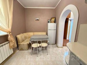 Вместительный трехкомнатный дом с уникальным расположением и отдельной зоной для отдыха. В дом принимают до семи человек (одна комната на первом этаже и две спальни - на втором). Внимание необходимо обратить на крутую лестницу внутри. Горячая вода в доме в неограниченном количестве, т. к. источником является газовый котел. В доме чисто и аккуратно. Находится дом в общем закрывающемся на ворота дворе (на 3 дома), где могут погулять дети, при этом они не выбегут на улицу. Во дворе можно поставить до двух автомобилей (причем места именного этого дома, поэтому, они всегда будут в наличии). Также у дома есть отдельная, принадлежащая только ему зона для отдыха на свежем воздухе: беседка увитая виноградом, большой стол со скамьей, барбекюшница. Во время того, как родители отдыхают, дети могут спокойно играть на территории всего закрытого двора. Касаемо расположения. Оно уникально. Дом находится максимально близко к "спрятанным" санаторским пляжам, путь к которым находят далеко не все. Именно поэтому на данных пляжах не много народу даже в разгар сезона. Как добраться и как попасть на эти пляжи мы рассказываем своим клиентам.
