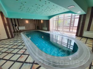 Дом премиум класса в центре Евпатории со своим большим двором. Во дворе под навесом можно поставить 2 автомобиля, также имеется гараж. Во дворе имеются 2 беседки с зоной барбекю и летней мебелью. Во всем доме есть качественная система кондиционирования. Для тех, кто арендует дом предоставляется уборка раз в несколько дней (можно чаще по запросу). В доме есть 5 санузла. В доме есть бассейн, сауна, бильярдная комната и комната для массажа. Огромная гостиная, которая предназначена для отдыха большой компании. Сложно сказать чего нет в этом доме, так как он оборудован всем. До ближайшего песчаного пляжа (пляж санатория "Золотой берег" или пляж Робинзон) - 8-10 минут ходьбы. Рядом с домом (в радиусе 3-5 минут прогулочным шагом) есть кафе, столовые, магазины, детские площадки, аквапарк "Акваленд", точки продажи овощей и фруктов; остановки трамвая и маршрутных такси, идущих в любую точку города; до ближайшего круглосуточного супермаркета 10-12 минут пешком.