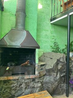 Во дворе мангал , санузел и душ . На первом этаже кухня , душ с санузлом , и комната . На втором этаже 3 комнаты и санузел , так же балкон , где можно посидеть . Цена зависит от месяца . Уточняйте по телефону