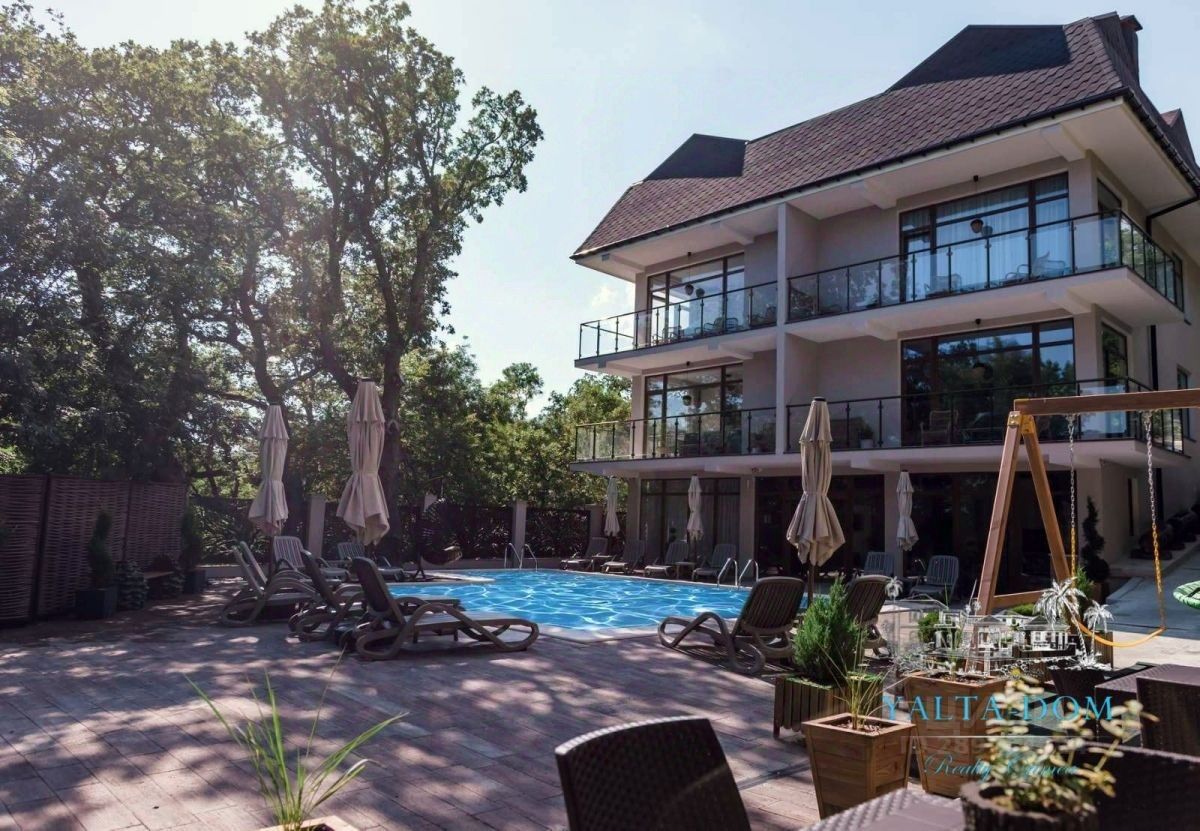 Новая трехэтажная вилла с дизайнерским ремонтом, общей площадью 400 квадратных метров, расположена на участке 15 соток, на закрытой охраняемой территории, в тихой прибрежной части Алупки, недалеко от Воронцовского дворца и Милютинского парка.