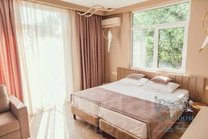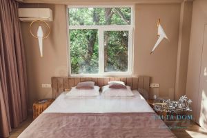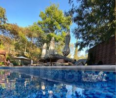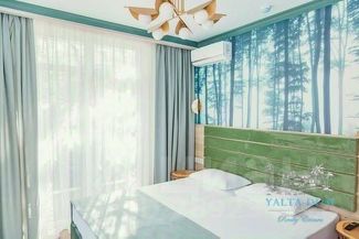 Вилла имеет 8 спален, каждая из которых оформлена в своем тематическом стиле, панорамное остекление окон и террас наполняет пространство дома светом и позволяет любоваться великолепными видами крымской природы.