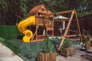 Гостей с детьми порадуют несколько игровых зон: детская площадка с качелями и горкой, детская комната со множеством игрушек. Есть все необходимое для комфортного проживания: детские кроватки, стульчики для кормления, горшки, полотенчики и даже, коляски. Территория оборудована, с соблюдением высоких стандартов безопасности!