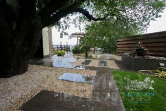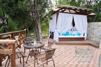 Во дворе дома - много вечнозеленых растений, просторный бассейн с противотоком, гейзером и зоной отдыха, мангал.