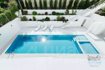 Два дома, эксклюзивной отделки и архитектуры, расположенные друг от друга на небольшом расстоянии (не более 7 м), имеющие общую зону для отдыха, сдаются как одно целое; от бассейна к ним ведет лестница.