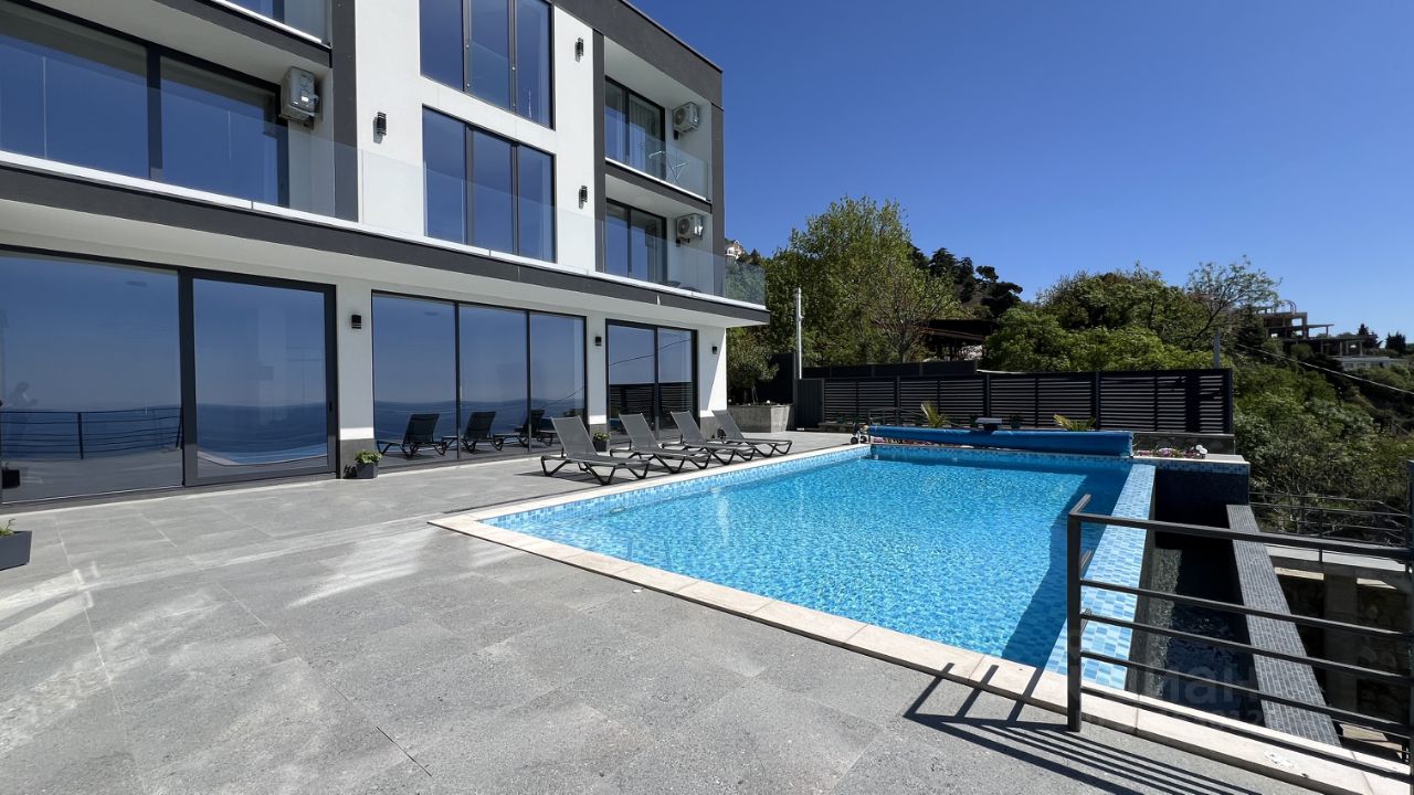 Современный, светлый дом в пригороде Ялты. На Территории парковка, зоны отдыха, бассейн с подогревом (подогрев обсуждаем отдельно), беседка с мангальной зоной, сауна. Все окна в доме панорамные в сторону моря.