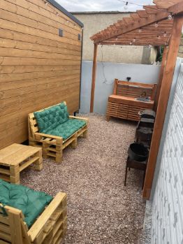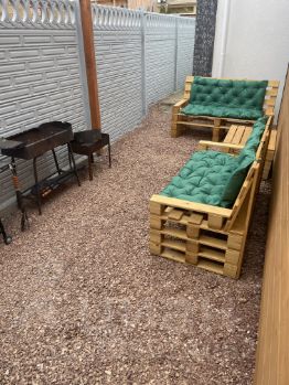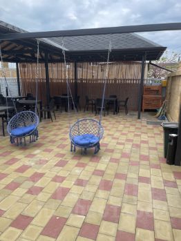 Во дворе есть бассейн 8*4 с детской зоной,лежаки и подвесные качели.Мангалы и столы .