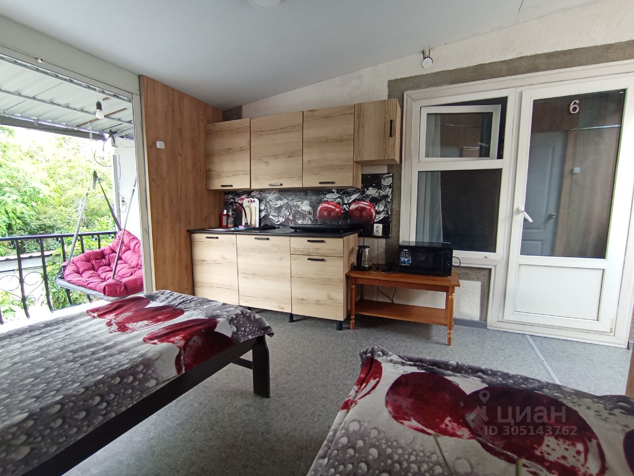 4 чел номер с большим балконом с качелей и своей кухней от 2500-4500