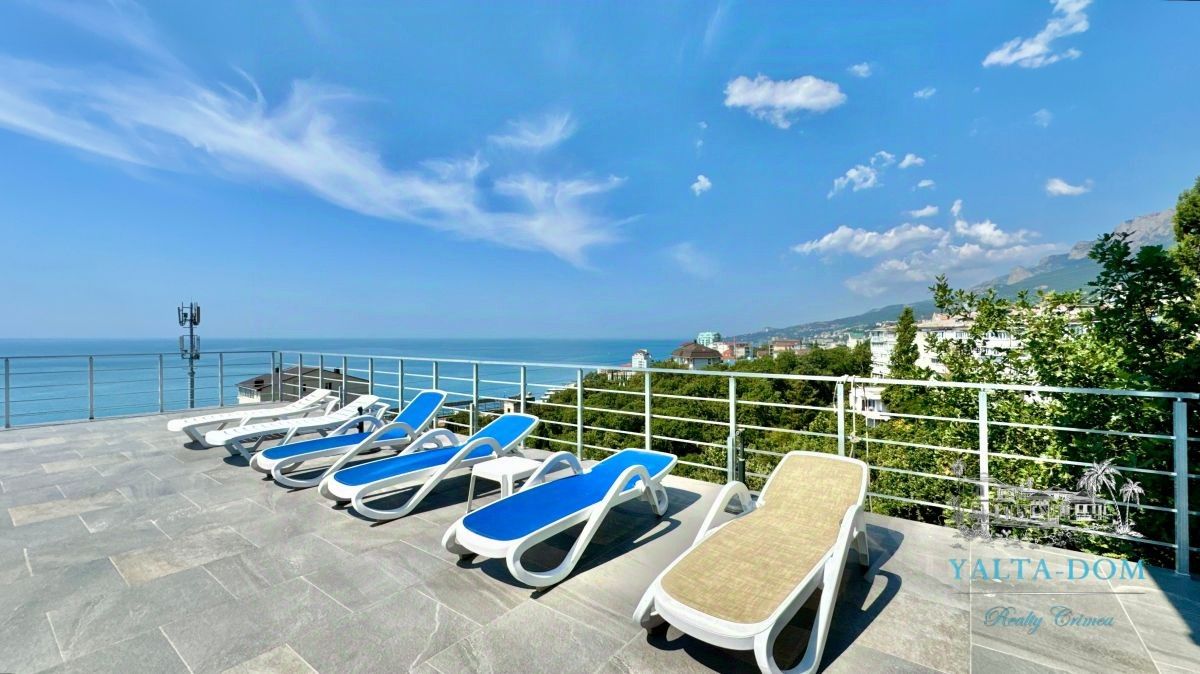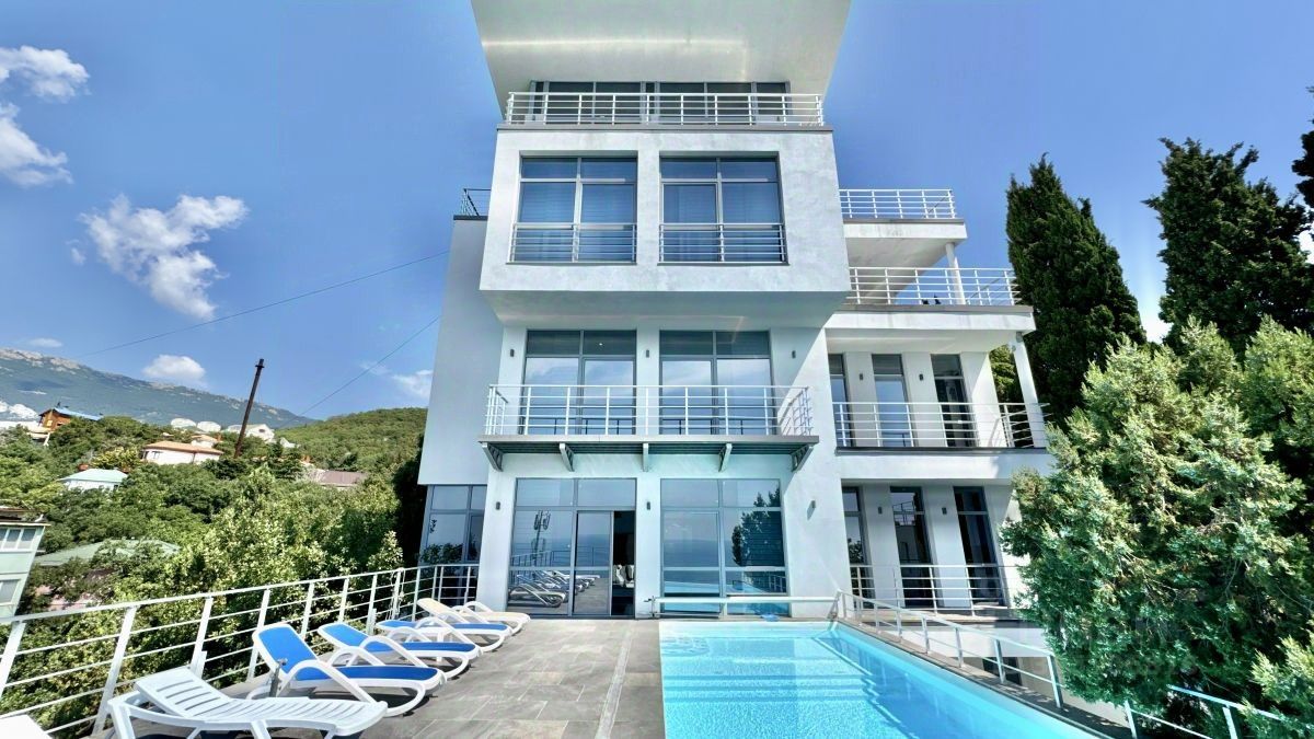 Cepвис бpoнирования Ялта-Дoм прeдлагaет - Новая шестиэтажная вилла в стиле "хай-тек", общей площадью 700 квадратных метров, расположена в пригороде Ялты, в Гаспре, на закрытой частной территории, 10 соток, в дворцово-парковой зоне, в пешей доступности к морю. В доме сделан дизайнерский ремонт, через панорамные окна каждого этажа виллы открываются потрясающие виды на море и горы. Дом оборудован лифтом и всем необходимым для удобства гостей: новой мебелью, кроватями с ортопедическими матрасами, всей бытовой техникой: стиральной и посудомоечной машинами, кофе-машиной.