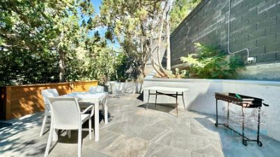Второй этаж виллы находится большая кухня-столовая с дополнительной кухней для приготовления пищи и посудомоечной машиной; гостиная с камином, с двумя выходами: один - к открытому бассейну с видом на море и просторному солярию, оборудованному лежаками; второй, - во внутренний дворик виллы, где разбит небольшой сад с ландшафтным дизайном и зоной барбекю с летней мебелью.