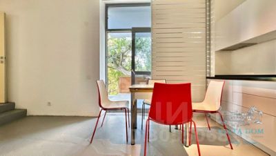 Первый этаж небольшой холл, лифт, шкаф для одежды, санузел с ванной, небольшая кухня с выходом на террасу в сад, спальня с двуспальной кроватью и панорамными окнами с видом на сад.