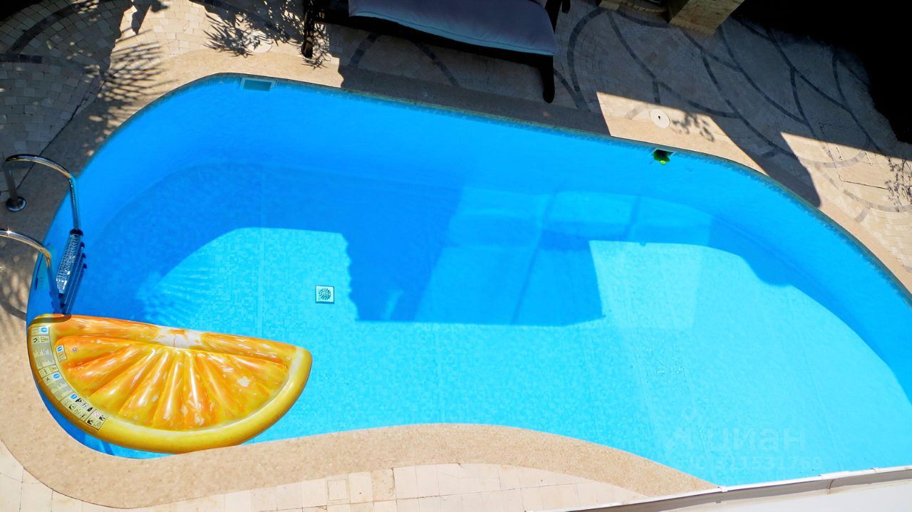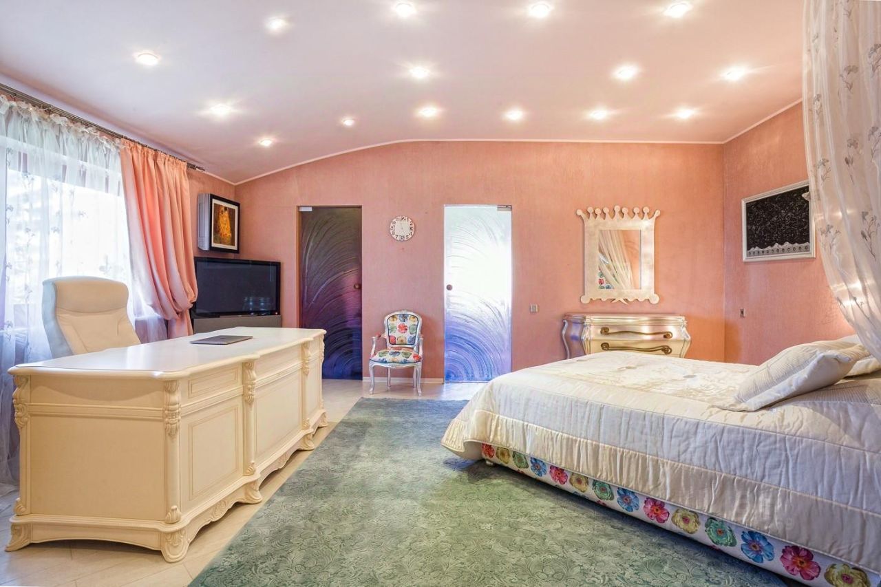 Общая площадь 350 кв.м., 2 этажа, 3 спальни, участок 7 соток с бассейном, сауна для отдыха.