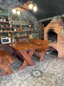 - Полноценная кухня в беседке. Плита, холодильник, микроволновка, посуда