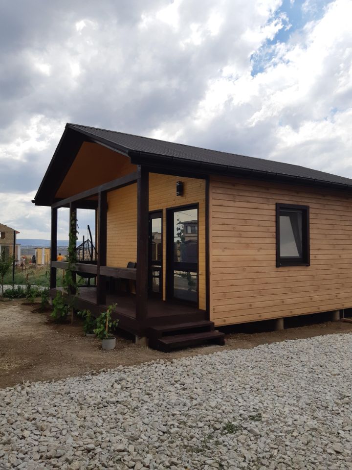 В домике оборудована кухонная зона.Есть вся необходимая посуда.