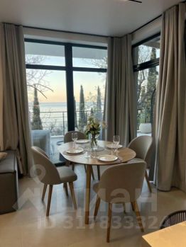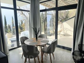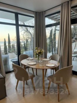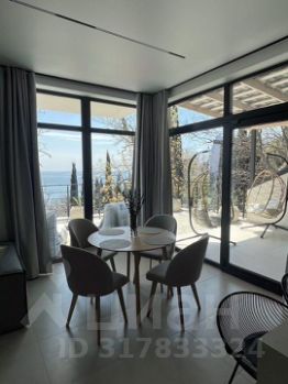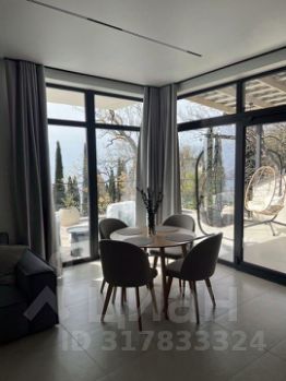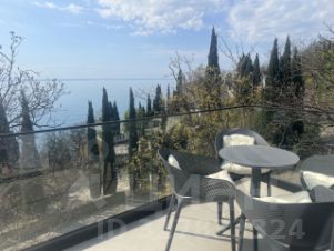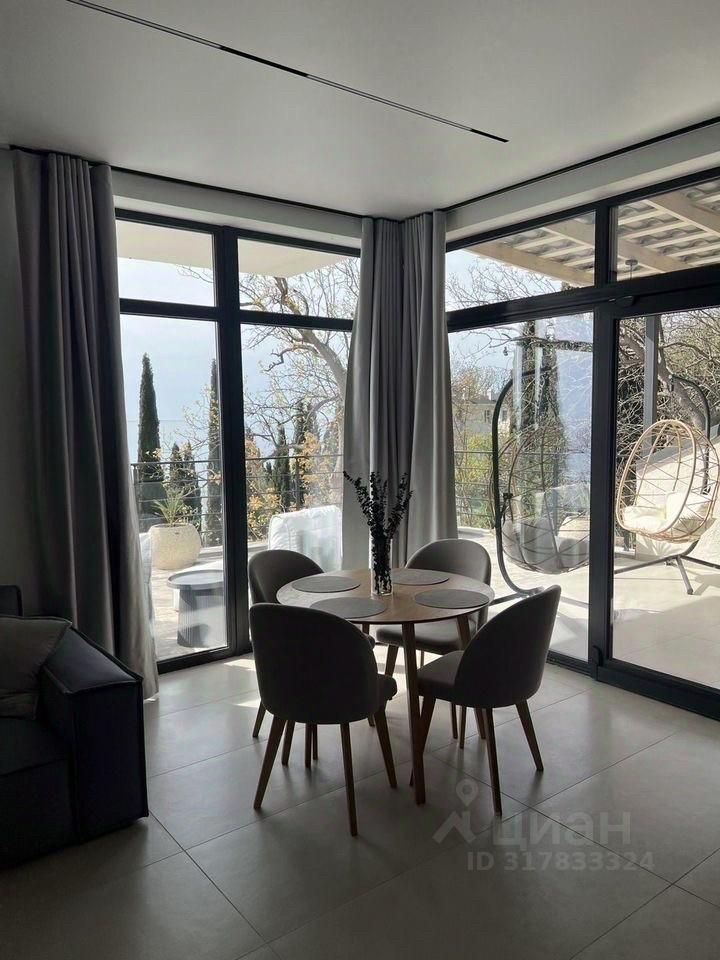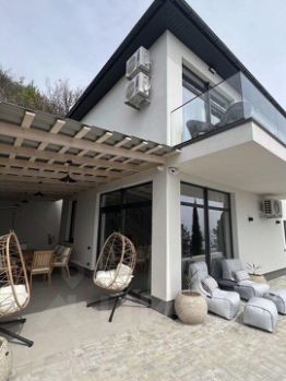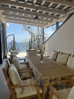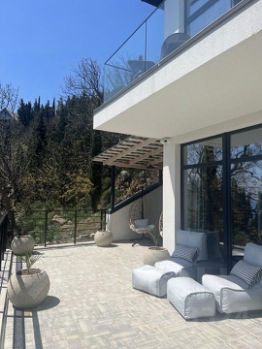 - из кухни-студии - выход на террасу с потрясающим видом на море, где размещена обеденная мебель на 8 посадочных мест, стол, мангал, два мягких шезлонга, две качели.