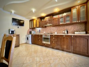 Кухонная зона: СВЧ печь, стол и стулья, стиральная машина.