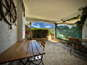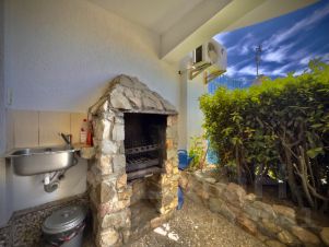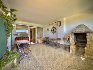 Терраса: обеденные столики, зона BBQ, тапчан для отдыха, шезлонги.