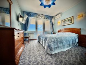 1-я спальня: двуспальная кровать, Жк телевизор, журнальный столик, кондиционер, шкаф, выход на балкон с видом на море.