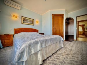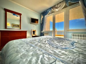 3-я спальня: двуспальная кровать, прикроватные тумбы, комод зеркалом, ЖК телевизор, выход на балкон с видом на море.
