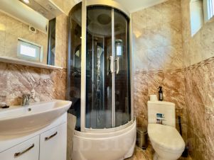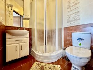 Санузел: душевая кабина, раковина с зеркалом, санузел.