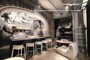 Гостиная: Диван, 2 кресла, Жк телевизор, барная стойка, санузел, выход на террасу.