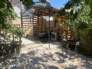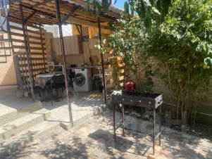 Во дворе летняя Кухня, столы, микроволновка, стиральная машина, мангальная зона.