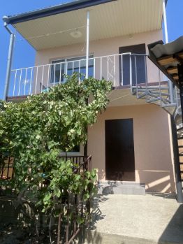 Дом состоит из двух этажей: на первом этаже две кровати односпальные (мы их сдвинули, сверху наматрасник) и диван. Три спальных места. Отдельный санузел: душ, горячая вода, туалет, раковина, холодильник, телевизор . Кондиционер.