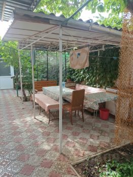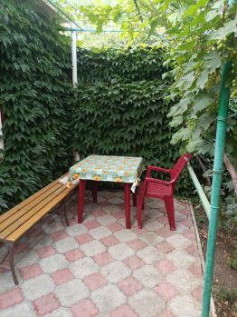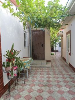 Сдаётся частное домовладение со своим двором. Также во дворе есть три номера с общей кухней и санузлом. В одном номере четыре спальных места ( две тысячи/сутки), во втором и третьем номерах по три спальных места(полторы тысячи/сутки). Очень хороший район, тихий. В доме пять спальных мест, сделан современный ремонт, очень чисто. Кондиционеры , телевизоры, стиральная машинка, микроволновка, бойлер. Постоянный бесплатный вай-фай. Во дворе много зелени, цветов и фруктовые деревья. Мангальная зона с камином и уютной беседкой. Двор собственный, дом из двух половин с отдельными входами для хозяев( взрослые люди муж и жена) и гостей. Парковка перед домом или во дворе. До Набережной Терешковой и пляжа 15 мин пешком. До ближайшего супермаркета и рынка пешком 10 мин . Минимальный срок заседания 5 дней.
