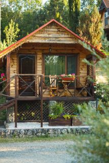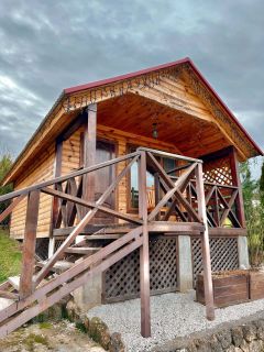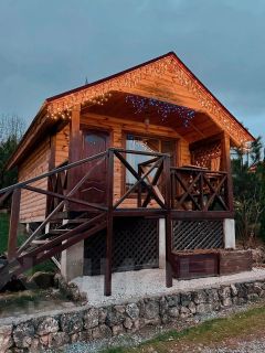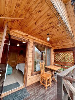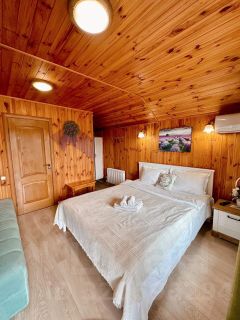 Предусмотрена кровать для двух человек . Возможно дополнительное место для ребенка на диване. В шале холодильник, чайник, телевизор, кондиционер, вайфай, душевая, санузел. Небольшая терраса