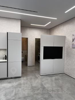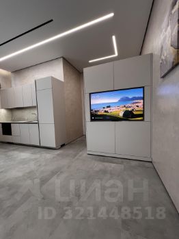 Большая комната (кухня-студия) с раскладывающимся двуспальным диваном 200х200 см. с местом для хранения с ортопедической начинкой! Установлены умные электро-карнизы для штор, тёплая стена для для полотенец, хорошая сантехника!