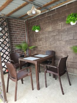 Есть двор мангальная зона . беседки.Стиральная машинка на территории. Парковка с видио наблюдением.Можно на месяц. Оплата ком услуг 2000т ( вода свет . газ. интернет . отопление.)