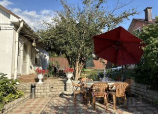 Сдается дом, Республика Крым, Симферополь, ул.Щаденко, общая площадь 120 кв.м.,земельный участок 6 сот. Дом расположен в районе Марьино. 3-х комн. Дом,состоит из двух раздельных и уютных комнат, гостиной, просторной кухни, холла, коридора и раздельного санузла. Дом полностью оборудован всем необходимым для жизни (мебель, две двухспальные кровати, диван большой раскладной, техника, посуда, постельное белье, спутниковое TV, высокоскоростной интернет, Wi-Fi, кондиционер, микроволновая печь, духовка, холодильник, стиралка, утюг с гладильной доской, двухконтурный котел и т.д. На территории земельного участка также есть отдельный гостевой домик со всеми условиями (кухня- студия, мебель, холодильник, TV, W-Fi, общий с/у, раскладной диван. В саду растут хвойные и декоративные растения, цветы, фруктовые деревья, малина, посеян газон. Территория с зоной отдыха с видом на пруд с водяными лилиями, в котором резвятся золотые рыбки. На лето можно установить Ваш бассейн возле мангальной зоны, рядом с которой есть детская песочница. Во дворе - тротуарная плитка. Территория полностью огорожена. Видеонаблюдение. Место для трех авто во дворе. Подъездная дорога асфальтированная. Электроворота с дистанционным управлением. Район является спальным обжитым районом города, рядом все, что нужно для жизни: магазины, аптеки, рынок, школы, сады, спорт зал, супермаркеты, кафе, лес, озеро. В шаговой доступности остановка общественного транспорта и центральная Ялтинская трасса. До центра города 7-10 минут на общественном транспорте. До моря 30 минут на автомобиле. Удобная транспортная развязка. Дом находится в тихой спокойной зоне в стороне от шумных дорог.