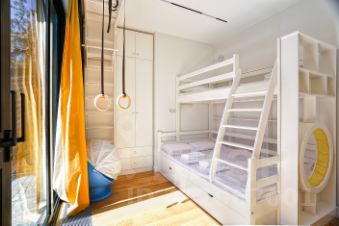 На вилле с комфортом может разместиться до 6 человек. Кухня-столовая и одна спальня на первом этаже. Удобный вход на уровне земли. На втором этаже 2 спальни и детская комната. Два санузла, по одному на этаже: с душем и с угловой ванной. Предоставляется постельное белье и полотенца гостиничного класса. Кухня полностью оборудована для приготовления и сервировки еды.