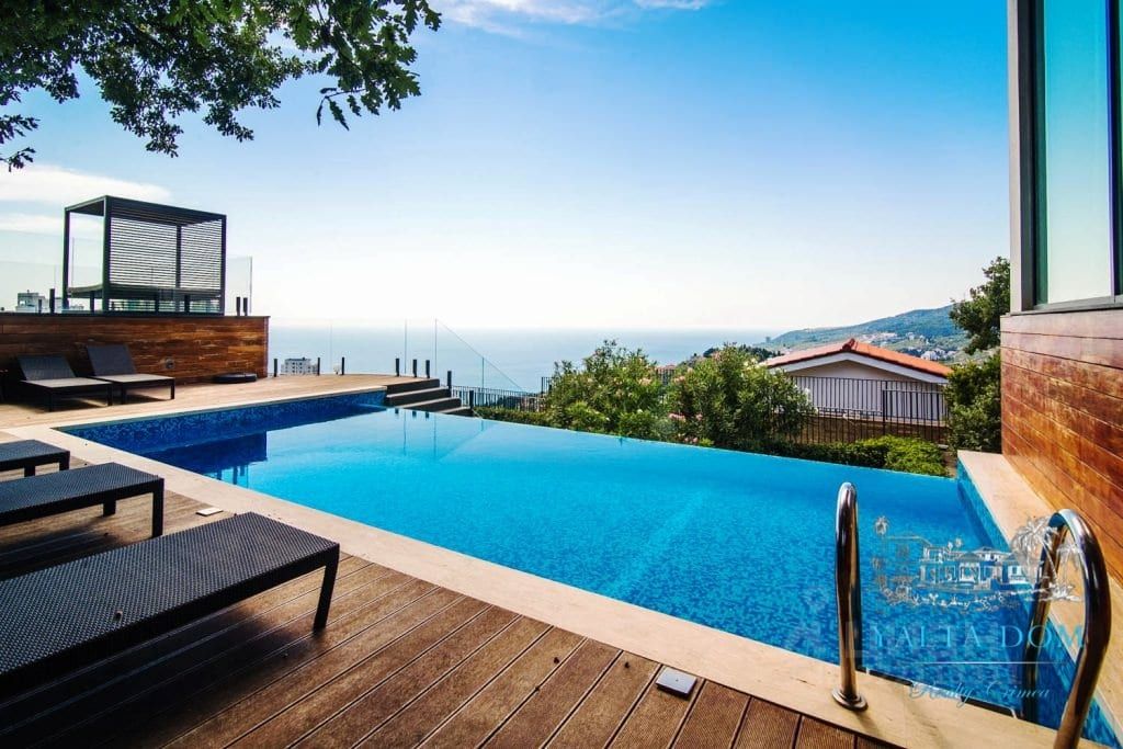 Придомовая территория 12 сотокХамамБассейн - инфинити с подогревомЗона барбекю с летней мебельюБеседка для отдыхаСпортзалКабельное телевидениеСистема кондиционированияГараж (два парковочных места)Охрана территорииОтдельная комната с кухней для персонала.Вместимость: