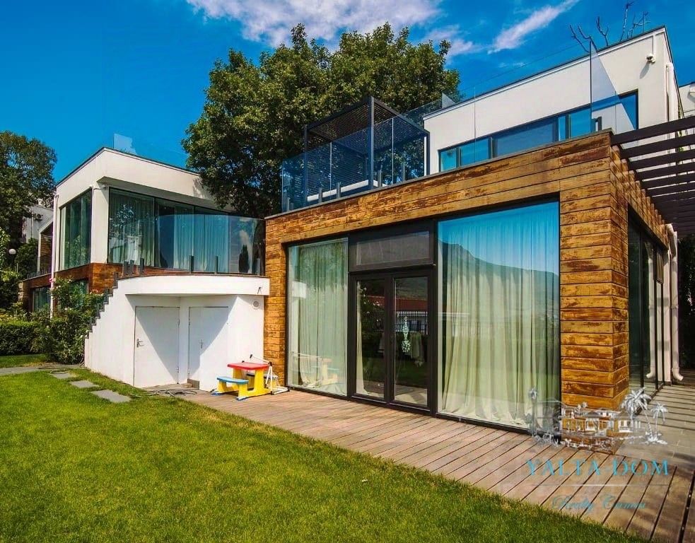 ОписаниеВилла площадью 700 квадратных метров расположена на участке 12 соток, на закрытой охраняемой территории поселка "Вилла Роз" между детским лагерем Артек и Гурзуфом. На первом и втором этаже виллы есть огромные террасы с красивым видом на Черное море и Гурзуф. На вилле пять спален и пять ванных комнат.