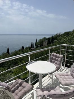 На балконе Вы можете встречать рассветы и провожать закаты, с живописным видом на море и лесной массив.