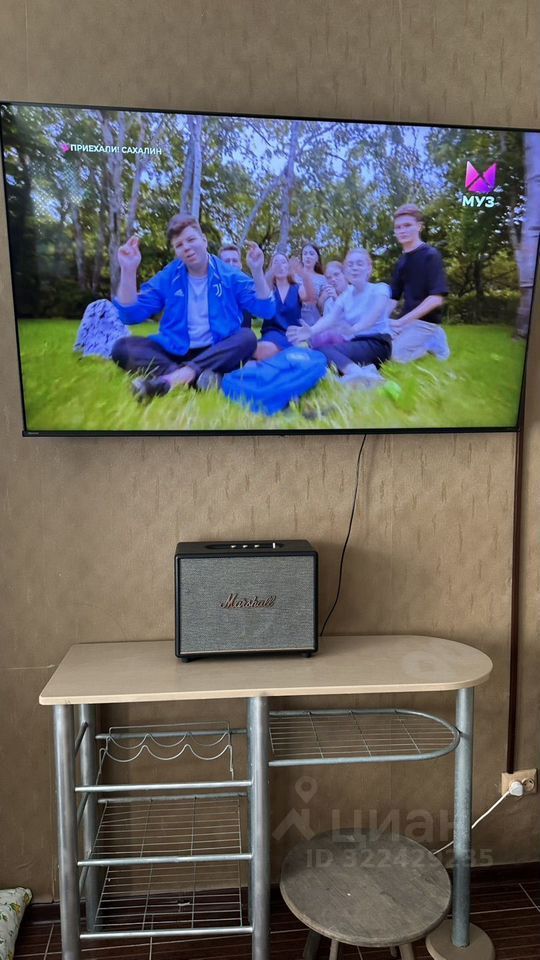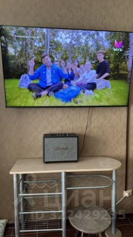 Просторная гостиная с большим телевизором, раскладной новый двуспальный диван, кондиционер.