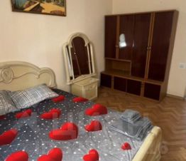 • В одной — двуспальная кровать, во второй — двуспальный диван , большой телевизор.
