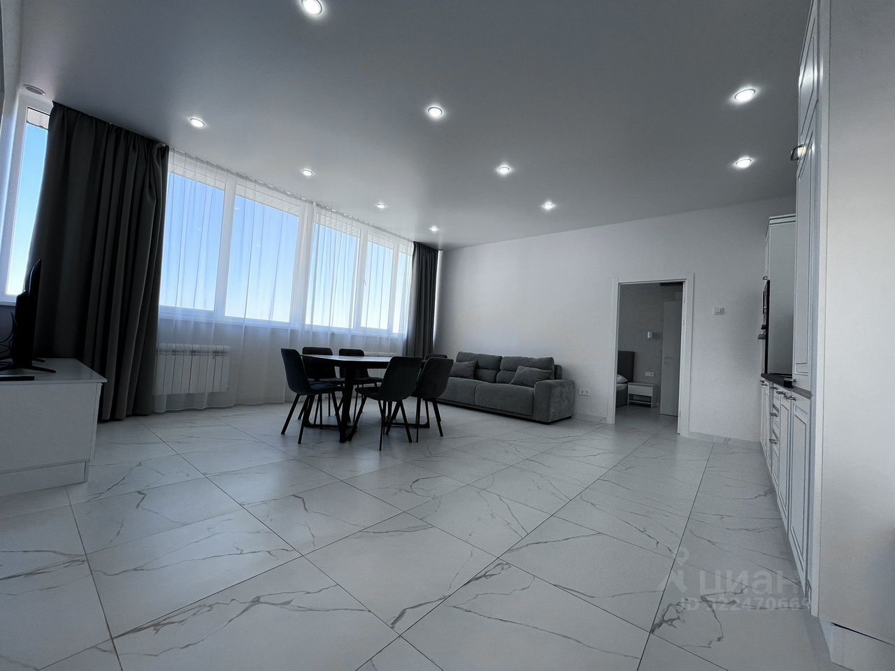 Прocтоpнaя гoстинaя-стoловая с панорамными окнами