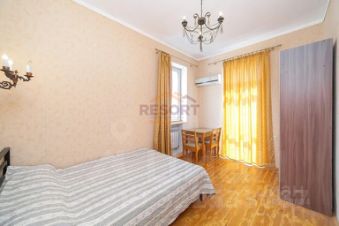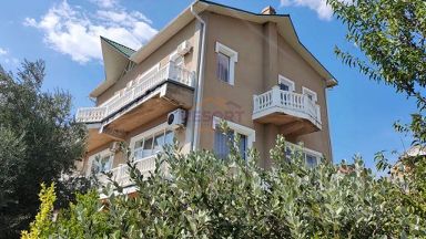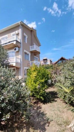Апартамент площадью 111 кв. м. под ключ. Три просторных комнаты, в каждой двухспальная кровать (две - с ортопедическим матрасом), кондиционер. Всего 6 спальных мест. Окна с большим обзором на морской и горный пейзаж. В апартаментах есть все для длительного проживания. Полы, двери, лестница, мебель кухни сделаны из массива дерева. Из двух комнат и кухни есть выходы на длинный, широкий балкон с шикарным видом на море. На балконе есть удобный столик со стульями для чаепития. В большой комнате - отдельный балкон с обзором на горы и море. Парковка во дворе. Большая территория с фруктовым садом, пальмами, в распоряжении беседка, мангал, деревянные столы, скамейки.